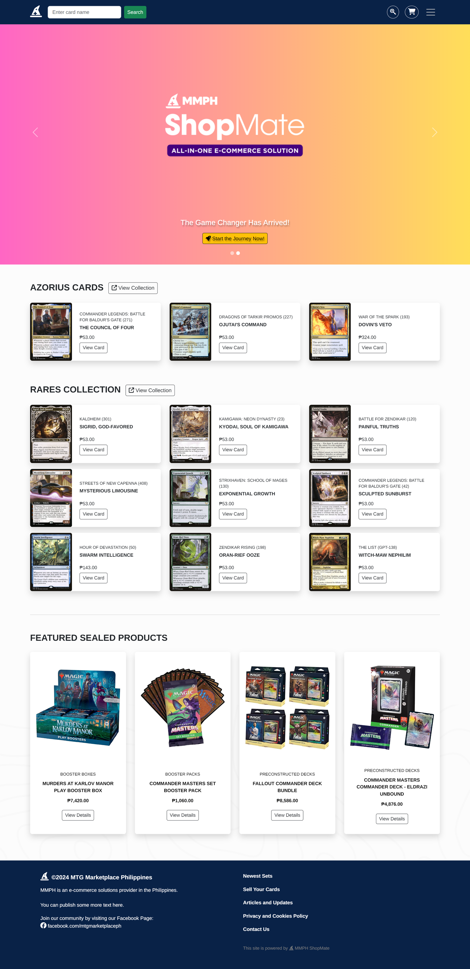ShopMate is a subscription based service by MMPH that enables hobby shop owners, especially those catering to Magic: The Gathering, to establish their own e-commerce shop. Integrated FAB database coming soon too!